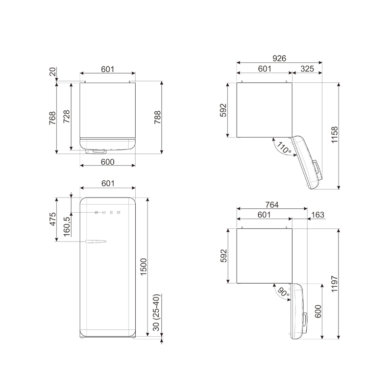50 年代復古系列,獨立式單開門冰箱,右手開門,風扇輔助制冷,A+++ 級能效