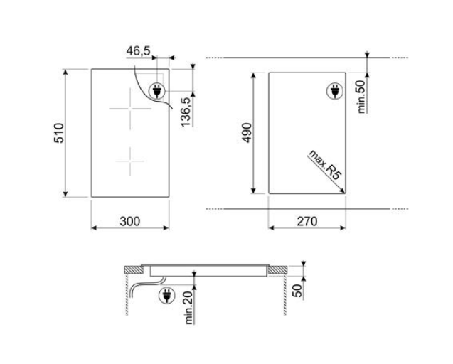 30cm 電磁爐,垂直直角邊緣,兩個(gè)加熱區(qū)