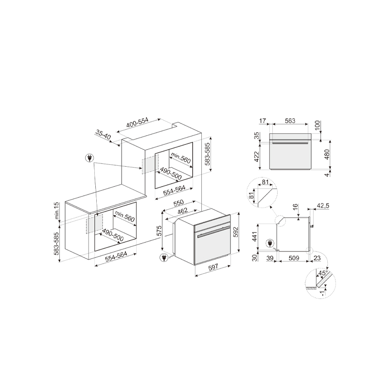 Dolce Stil Novo 系列,60cm,A+ 級能效,79L,黑色玻璃,熱解清潔,TFT 觸控導航顯示器,4 層玻璃門