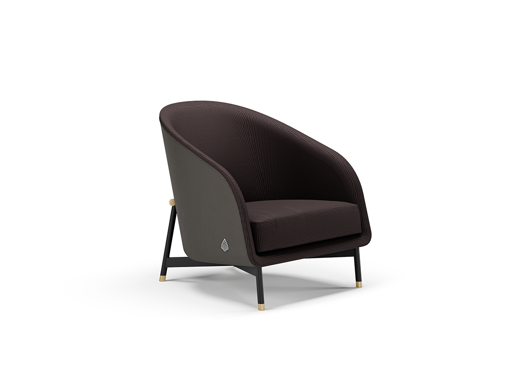 POLTRONA IN PELLE CON INTERNO IN TESSUTO, SUPPORTO SEDUTA IN METALLO, PIEDINI FINITURA ORO