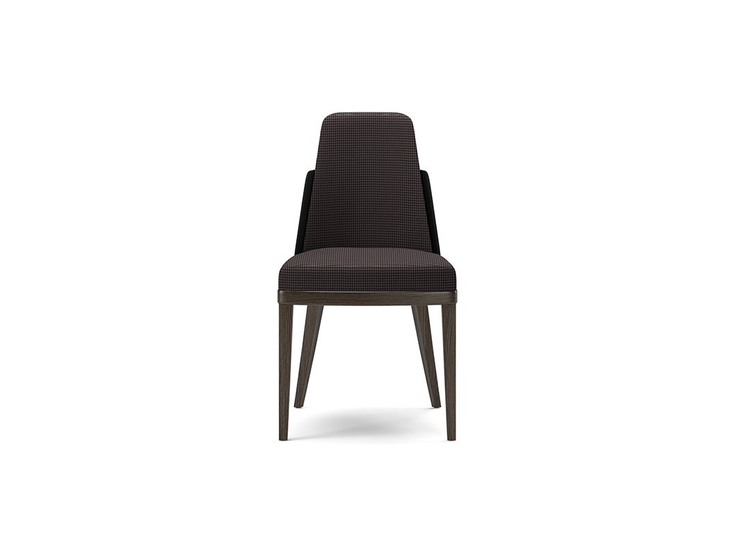 SEDIA IN VELLUTO O PELLE CON SCHIENALE IMBOTTITO, GAMBE IN ROVERE