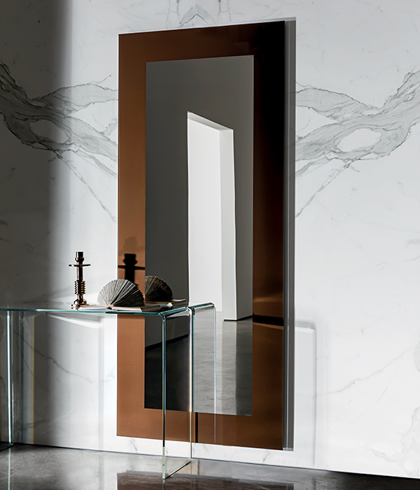 Disponibile in diverse dimensioni, fino a 200 cm di altezza, Boston aggiunge luminosità, profondità e inedite prospettive in qualsiasi spazio: piccolo o grande. La trasparenza del cristallo, il colore della laccatura e la superficie dello specchio creano molteplici effetti visivi.