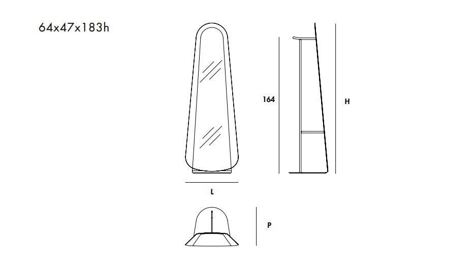 Specchio da tavolo con bordo acidato, disponibile in diverse tonalità di specchio. Struttura in metallo con finitura nero goffrato.