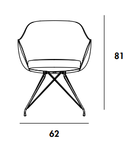 Sedia/poltroncina con base girevole in metallo laccato, varie finiture. Scocca rivestita in vari materiali e finiture.