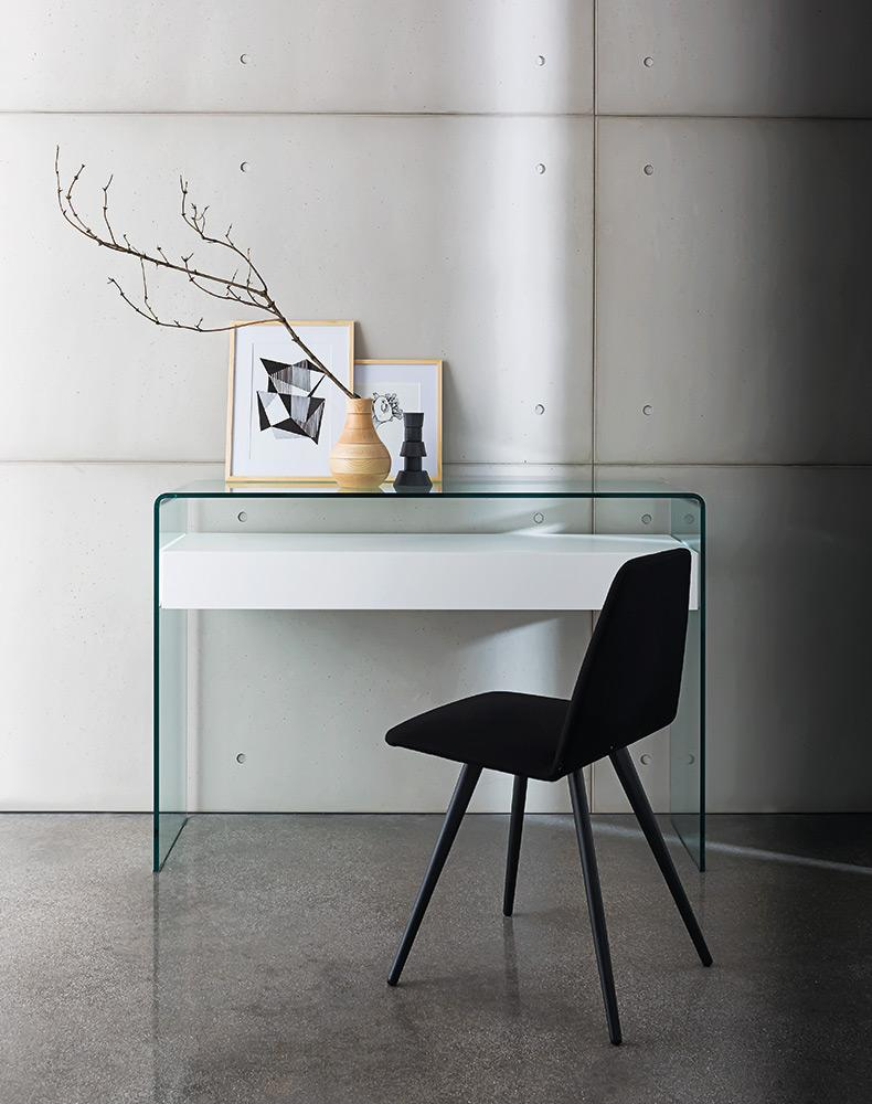Consolle in vetro curvato trasparente extrachiaro, fumé, laccato, mono o bicolore.