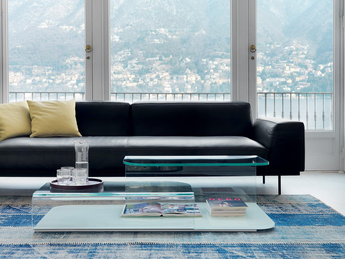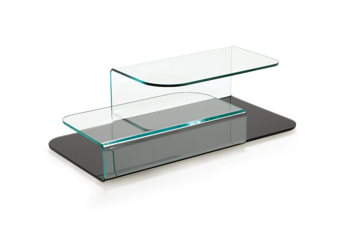 Un tavolino composto da forme semplici che si inseguono in un loop fluido, ripiegandosi armoniosamente su sé stesse. La sovrapposizione delle superfici offre diversi livelli d'appoggio ed un effetto ottico di forma infinita.