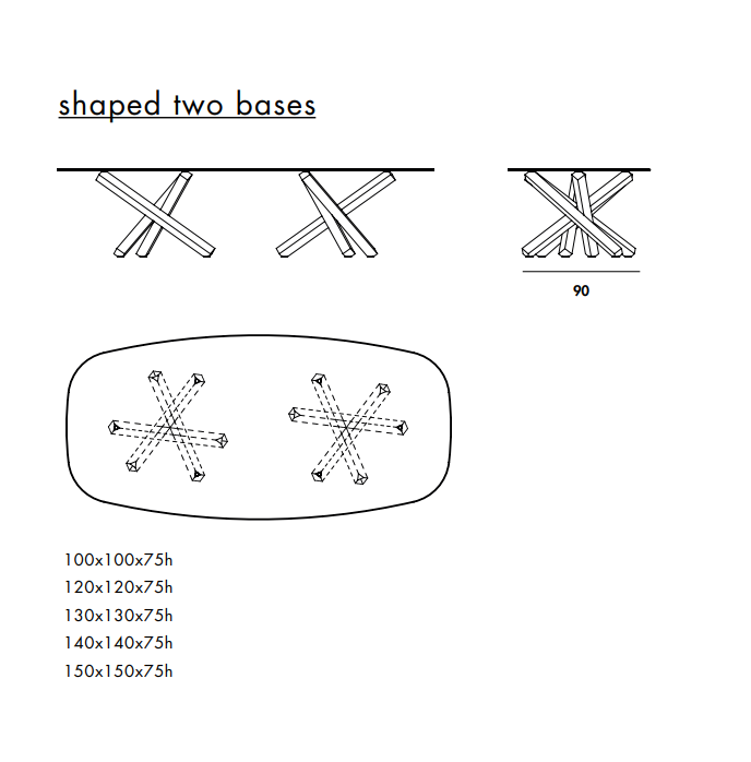 Tavolo con base in cristalplant bianco opaco, nero, brunito. Disponibile anche in legno di frassino con finitura tinto rovere o wengé, o in legno massello noce canaletto. Top in vetro temperato trasparente extrachiaro o fumé, o in ceramica, varie finiture. Piano disponibile anche nell’esclusiva finitura Liquid glass.