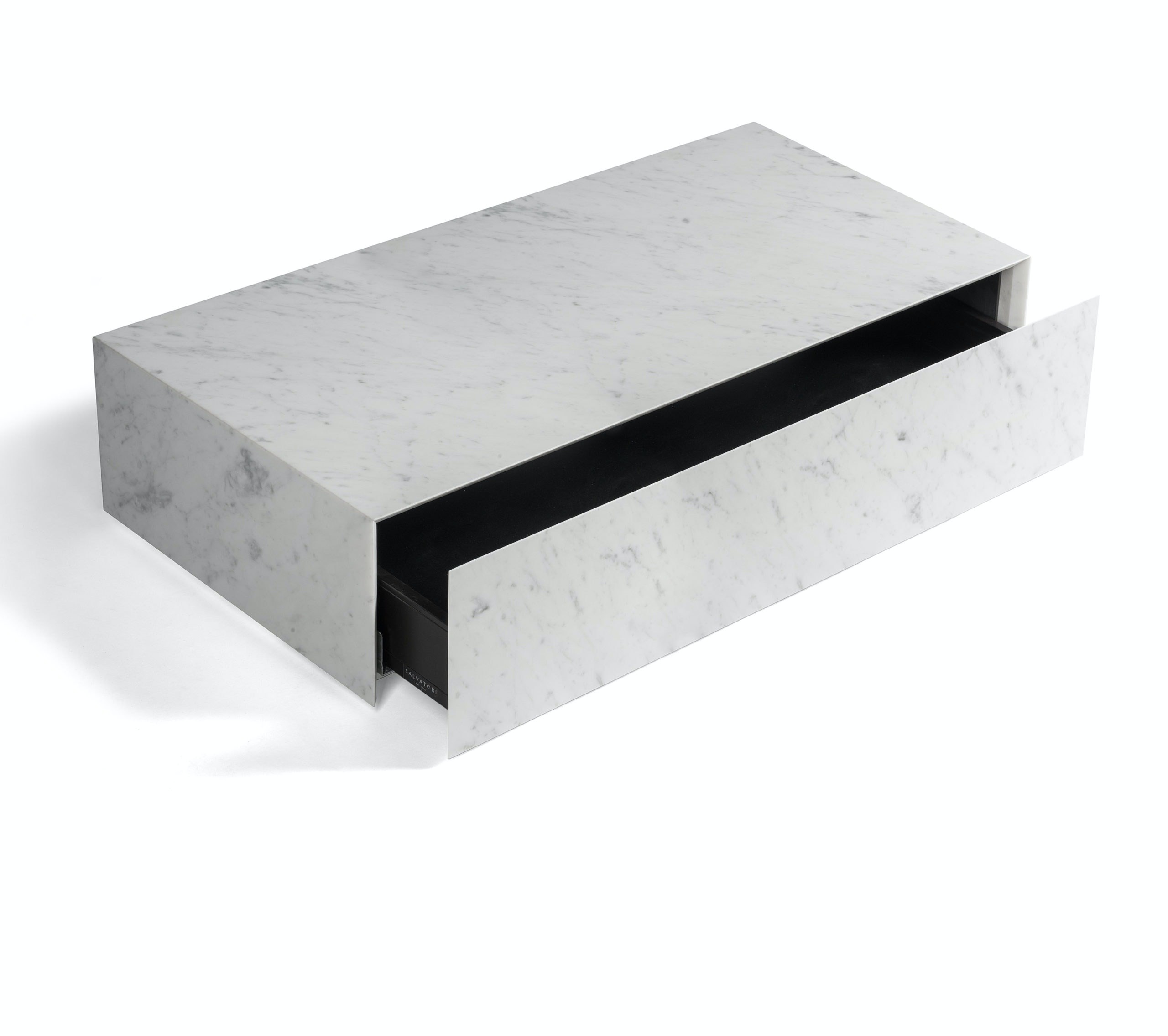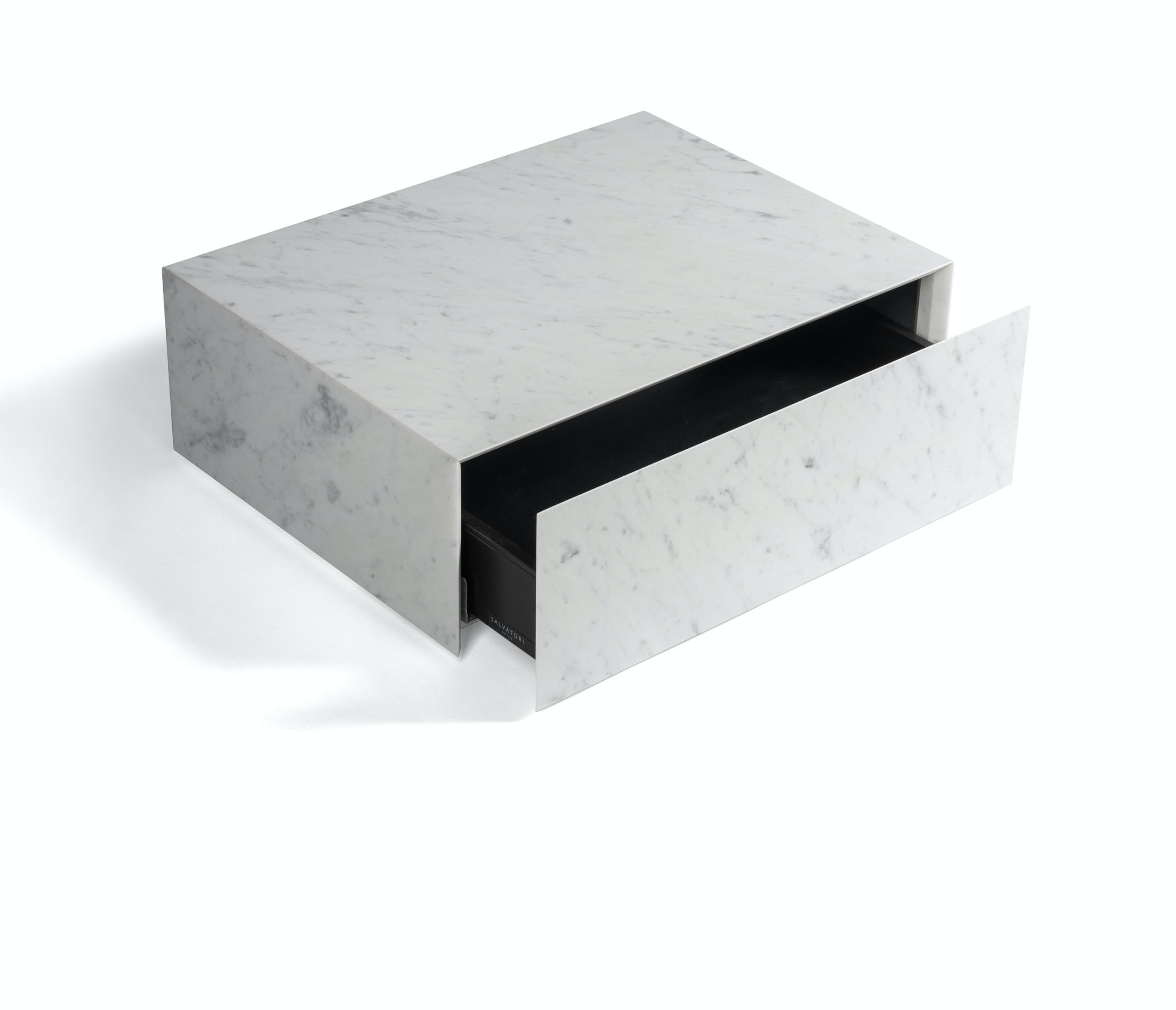 Part of the Fontane Bianche series, the Ciane drawers and floating shelves were created as a homage to a modern-day legend, the groundbreaking conceptual artist Donald Judd.