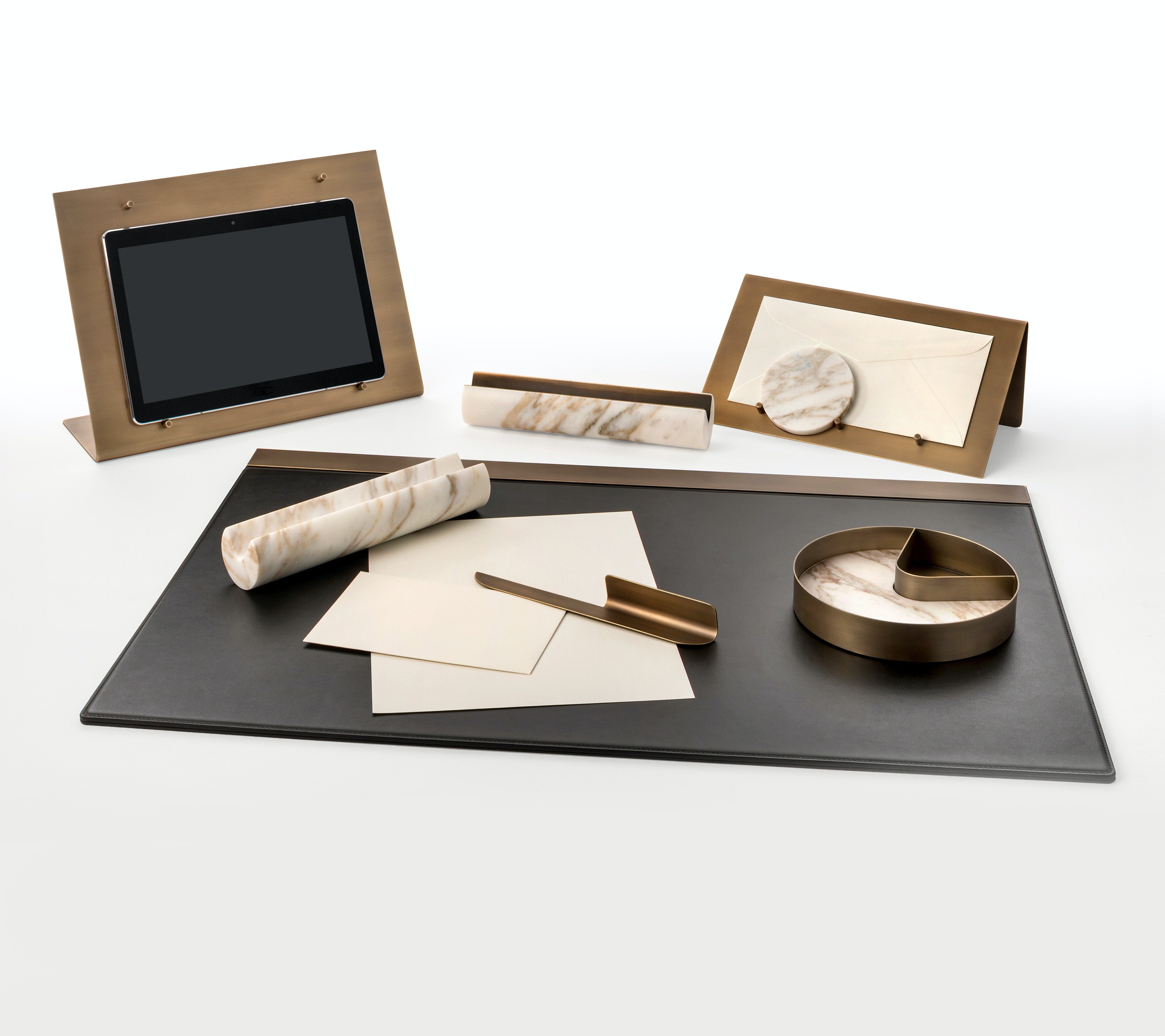 ‘Balancing’ is a series of distinctive and contemporary statement objects for the desk, transforming an everyday workspace into a stylish and inspiring environment. The starting point, which gave its name to the collection, is the pen holder which oscillates gently whilst maintaining its balance. This concept of dynamic balance was then applied and reinterpreted in di?erent keys throughout the collection of 9 pieces, which includes a tablet holder, letter opener, document holder and paperweight.