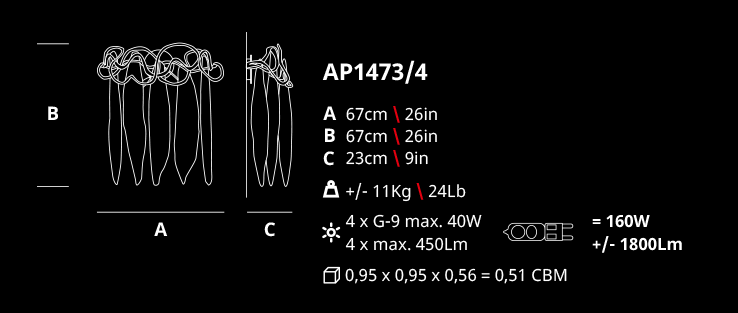 Visually embracing the tenacious and raw side of nature, this collection transpires a very close visual density of its inspirational waterfall through the glass pieces. The solid glass presence represents the untamed motion of water shaped, completed with organic patterns in a game of transparency and opacity, a characteristic that counteracts inertia and enhances movement. The metal structure follows the main concept with vines in a never ending fluid motion.