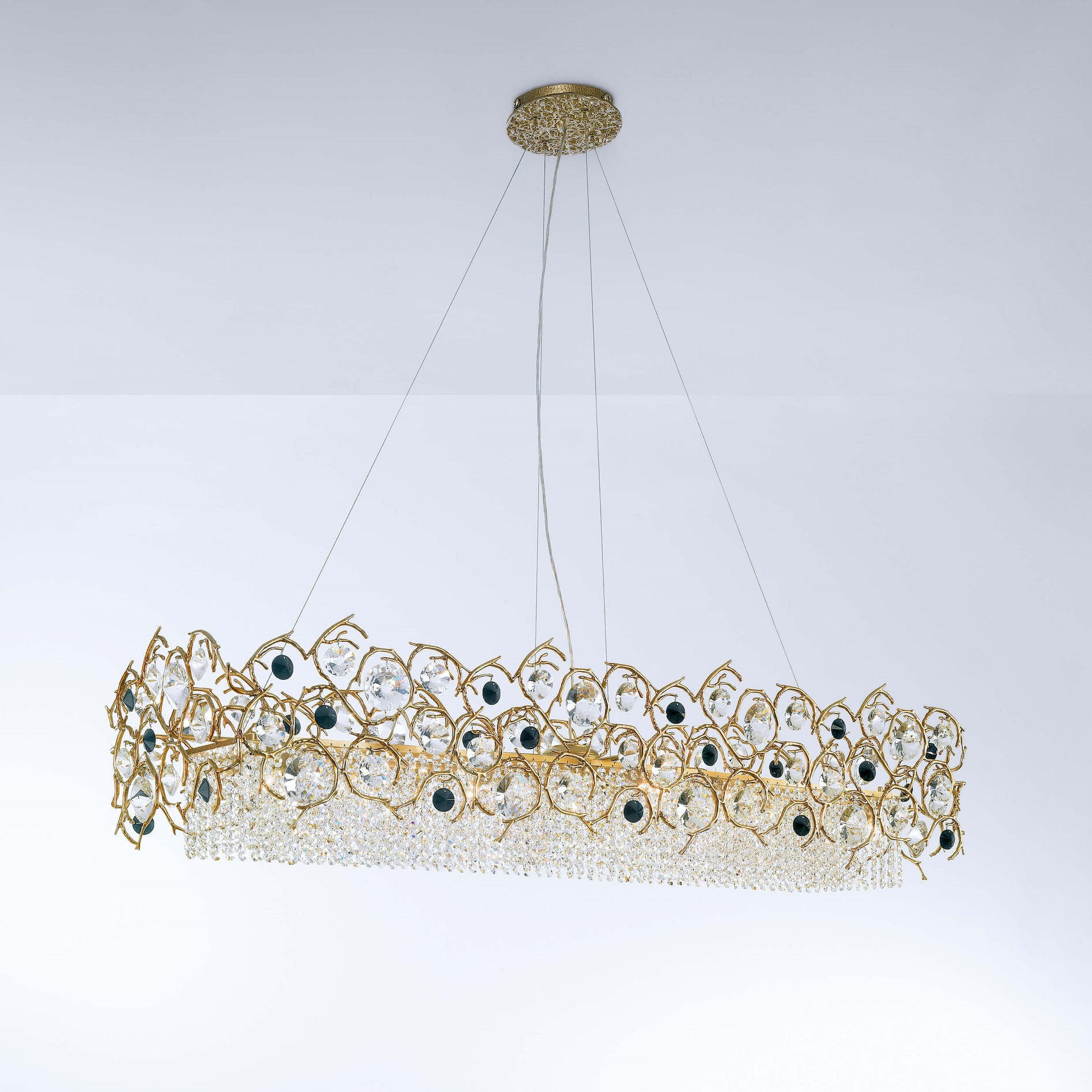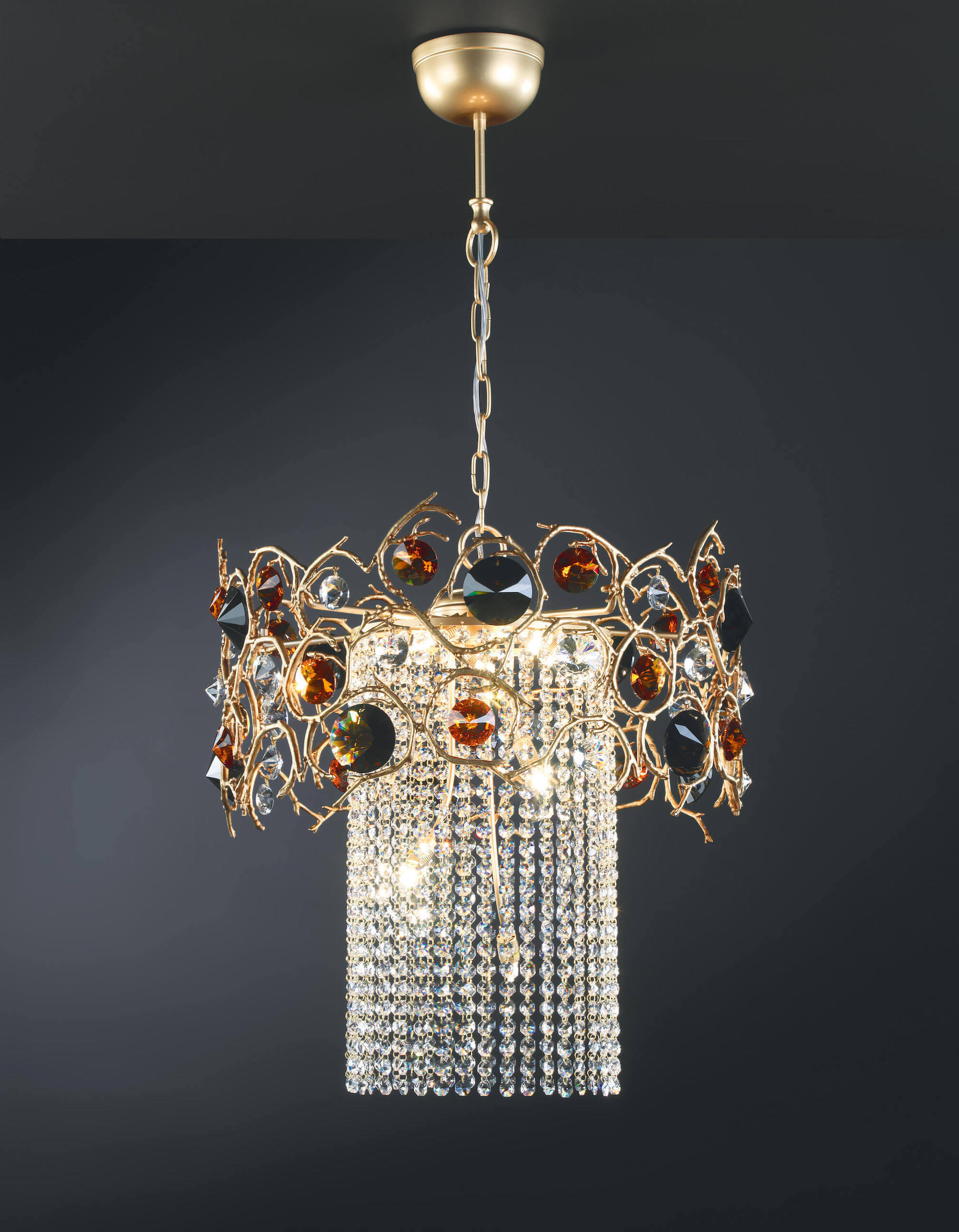 The Diamond Collection highlights a sense of luxury through the brightness of its imperial display. Opulent and extravagant, the collection reminisce on the hypnotizing glow of Sapphires, Emeralds, Ambar and Rubies. The rings of metal branches were carefully designed to incorporate nearly hundreds of gleaming stones, all for a final result of incredible shine and class, increasing to the measure of its length.