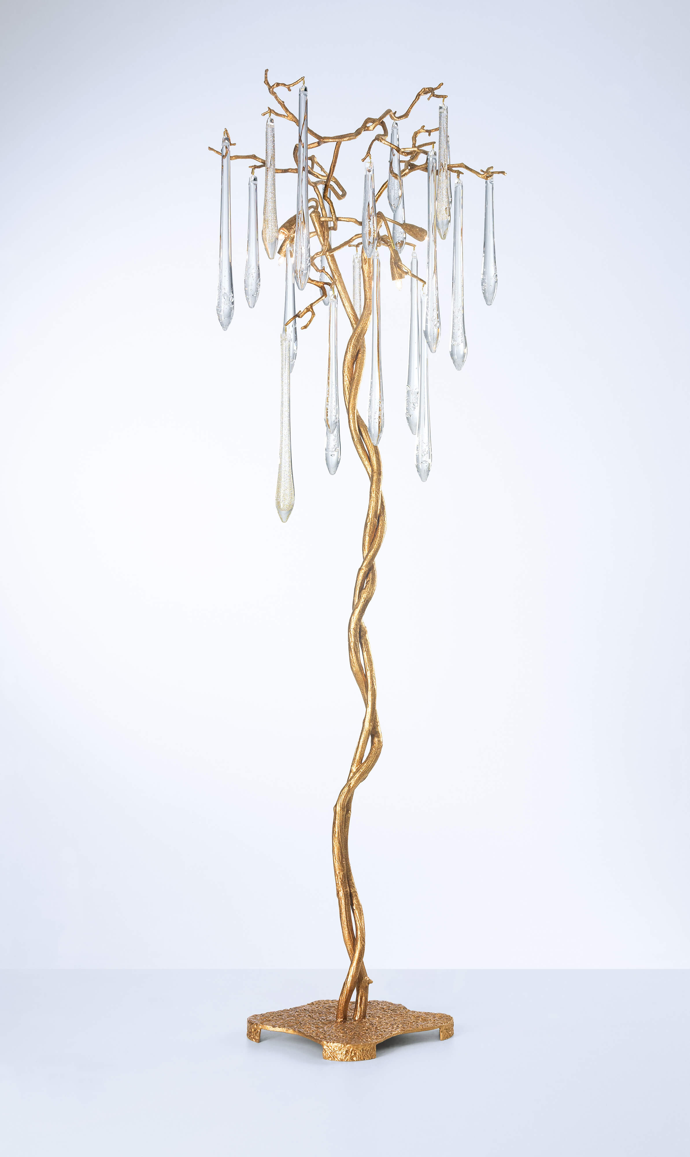 The Aqua Collection is an iconic set of the Serip family, both by its element of inspiration and by its inherent association with our identity, expressing a strong connection to our main inspiration source, nature. The bronze structure expands in entangled branches that lead to floating glass pieces, a characteristic that concedes an airy touch together with its delicate and elegant look, concepts visible in the smallest detail of the glass drops. Through several chromatic choices and design options, the Aqua Collection presents itself as an exquisite nature-inspired piece, perfect for any concept.
