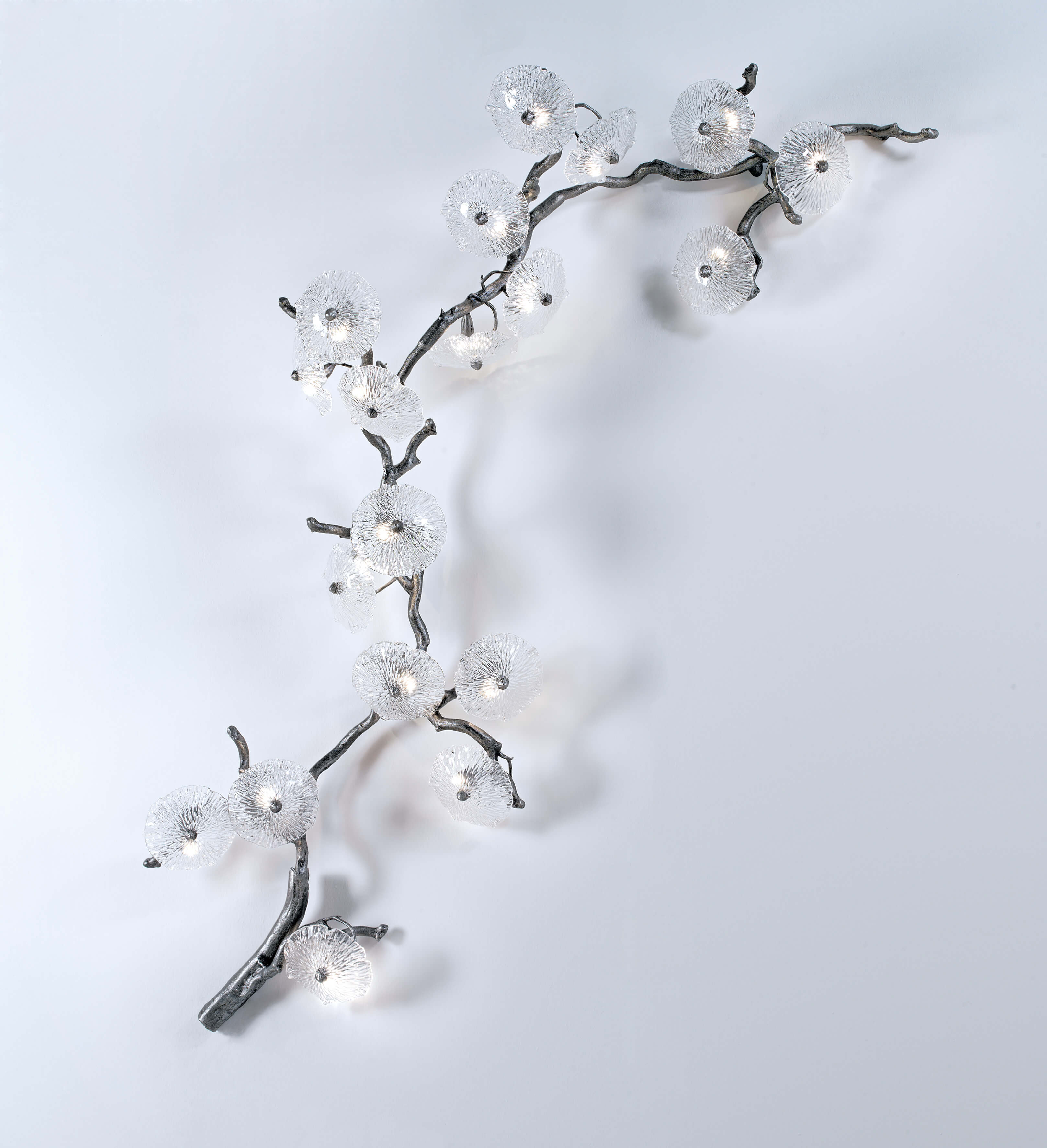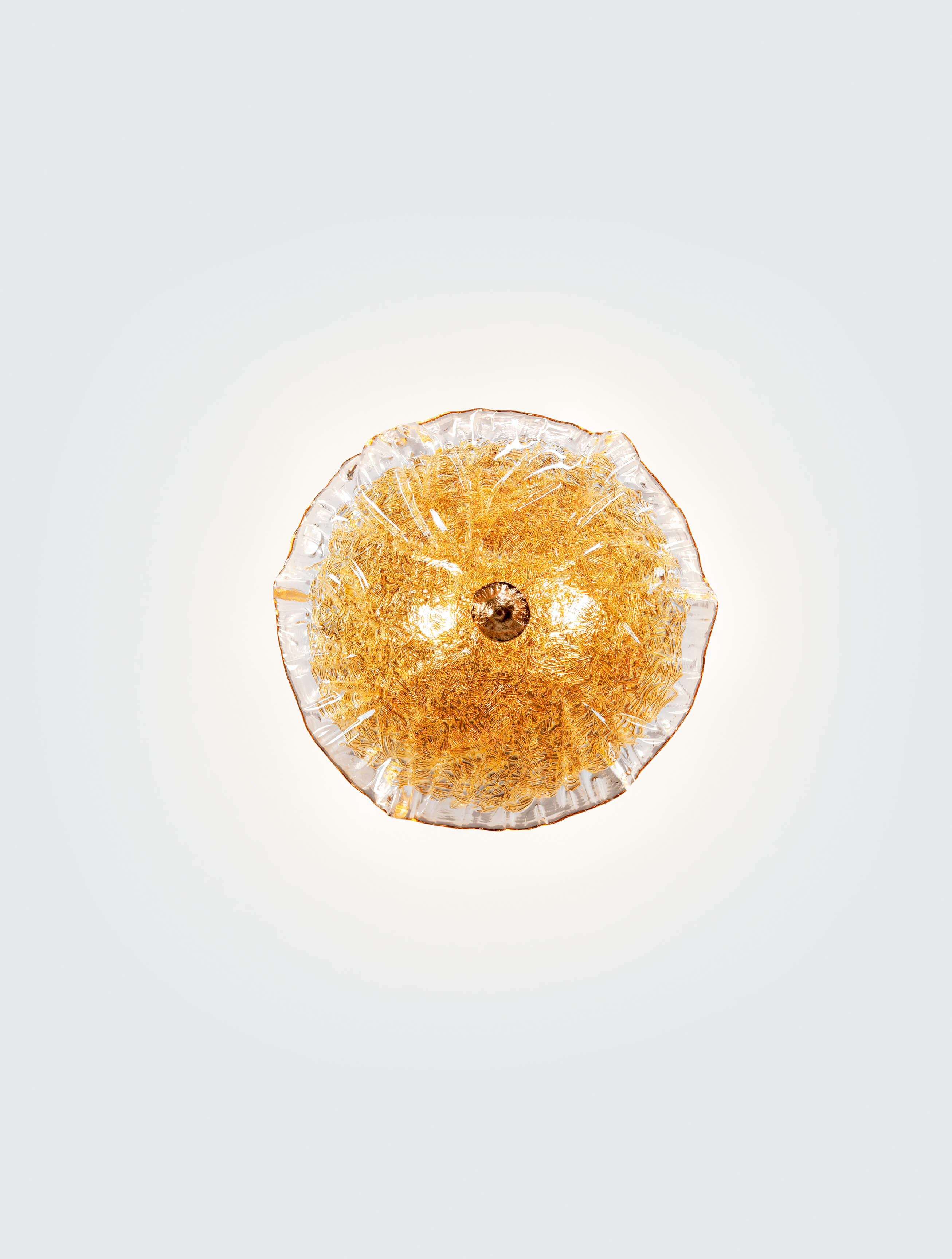 Beyond its particular dense structure and closed shape in some designs, it seeks an uncanny levitating sense, allowing multiple perspectives through the carefully crafted Murano glass pieces. Through the glass specifications, the Nenufar achieves diffuse lighting providing an alluring romantic sense, reminiscent of the natural beauty of nature.