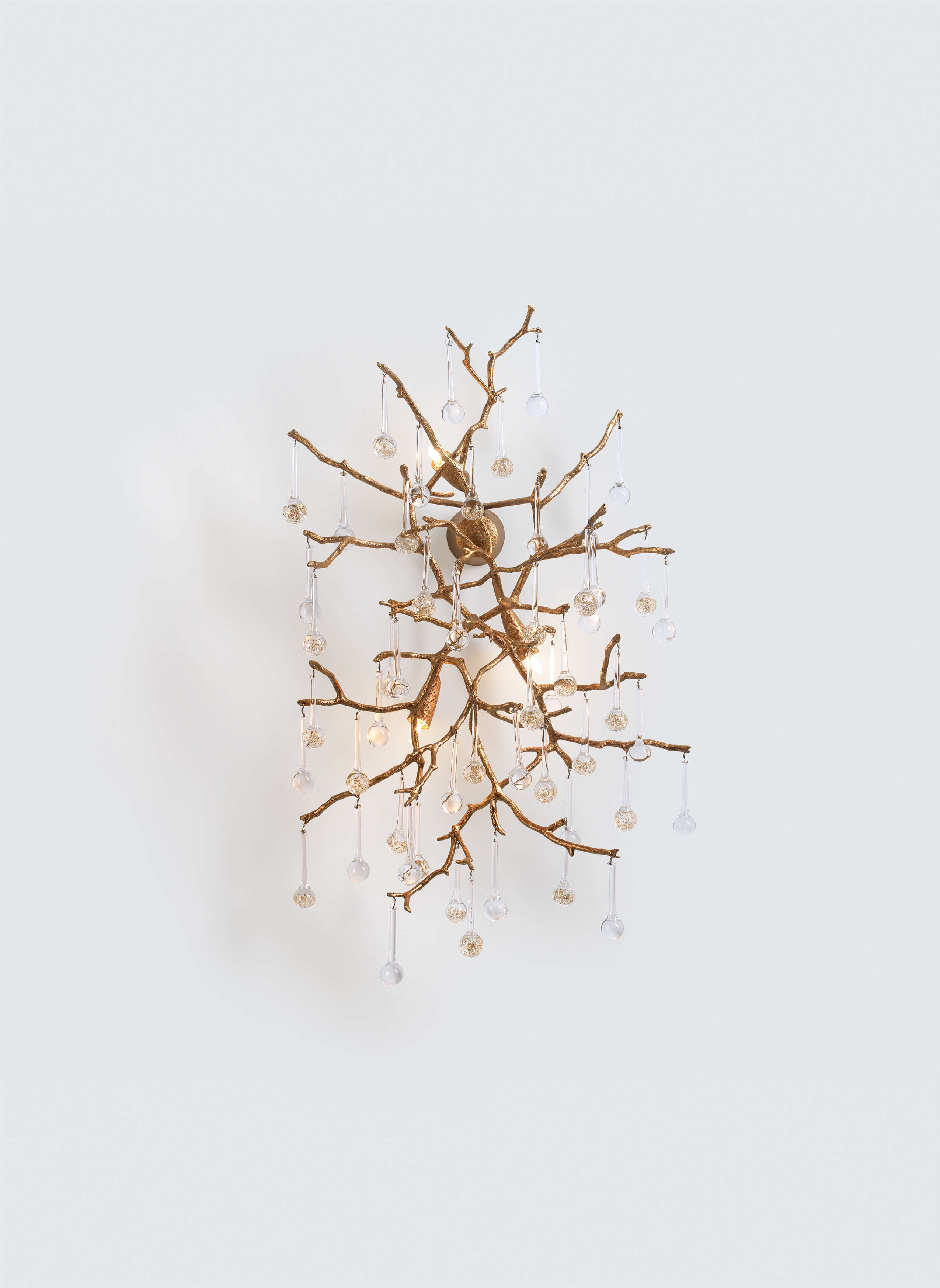 As beautiful and delicate as nature itself, the Bijout carries a romantic and whimsical sense of detail. The gentle glass pieces are designed to contrast directly with the complex and condensed bronze structure, in a combination of light and movement, and a multitude of colours and weights. In order to define a certain refinement to an interior design concept, the Bijout collection guarantees elegant and graceful details for compelling results.