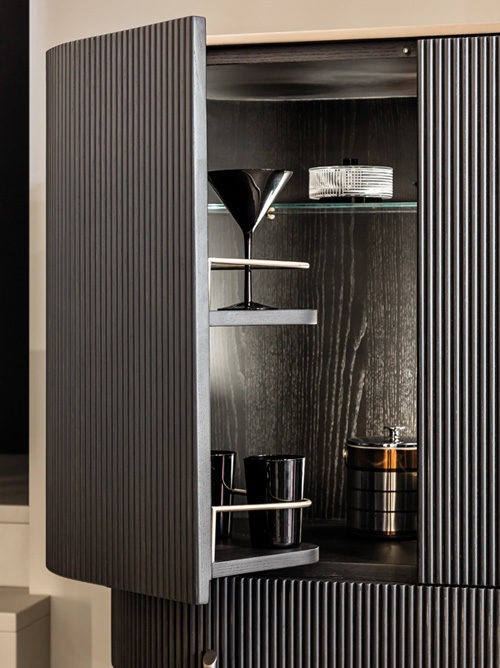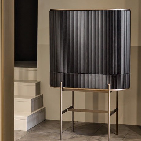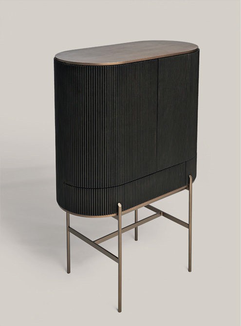 T150 noir, light bronze top and base, extra clear glass shelf, brass elements, light bronze metal legs