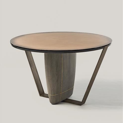 T49 cenere,light bronze metal inserts,wooden top in C80 resina lucida grigio sfumato