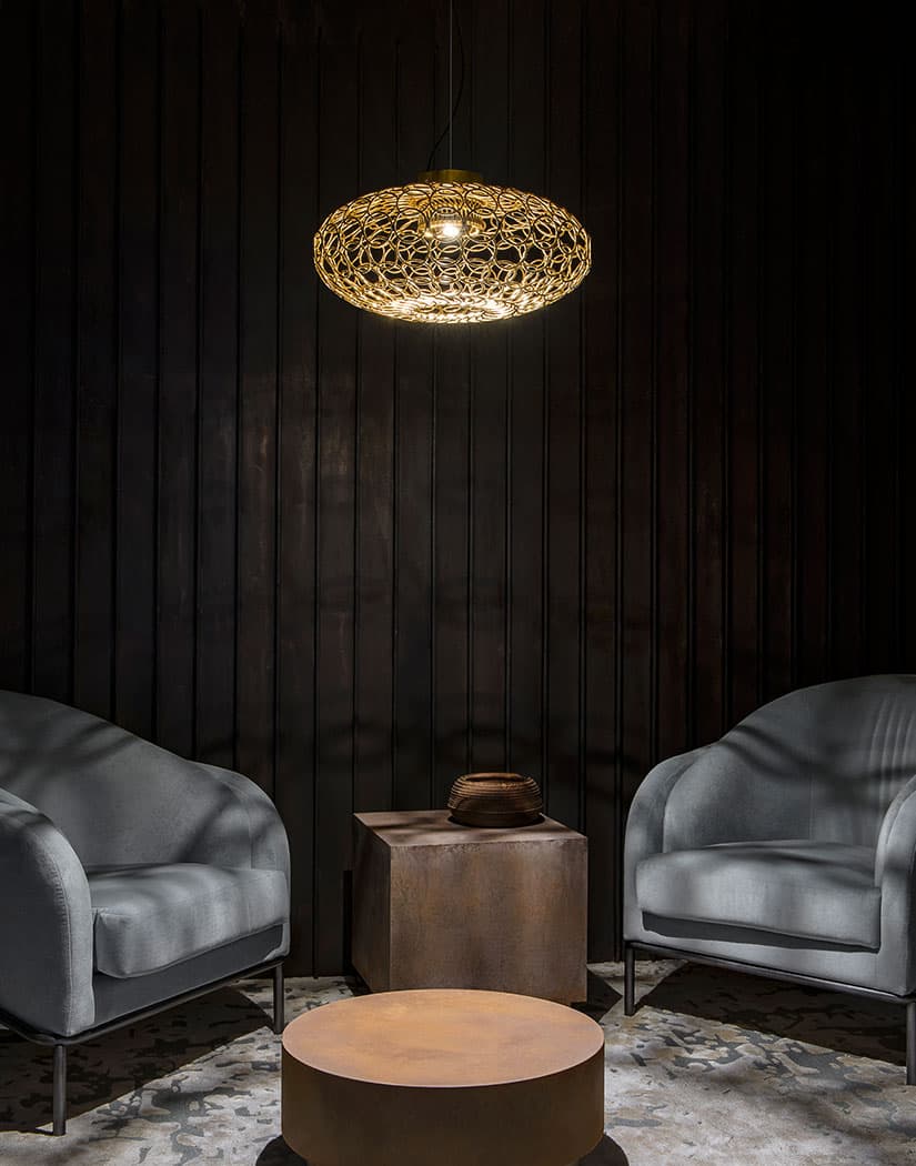 a delicate, refined pendant whose intricate shape belies its