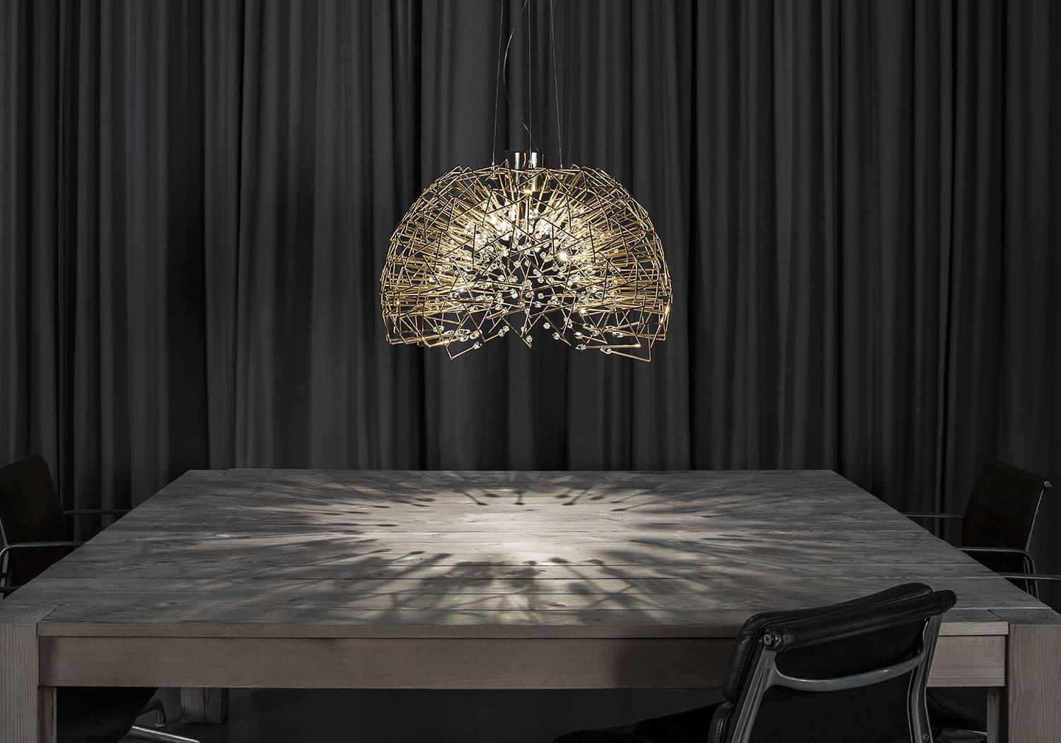 forces light and shadow erupt across the room, as the light