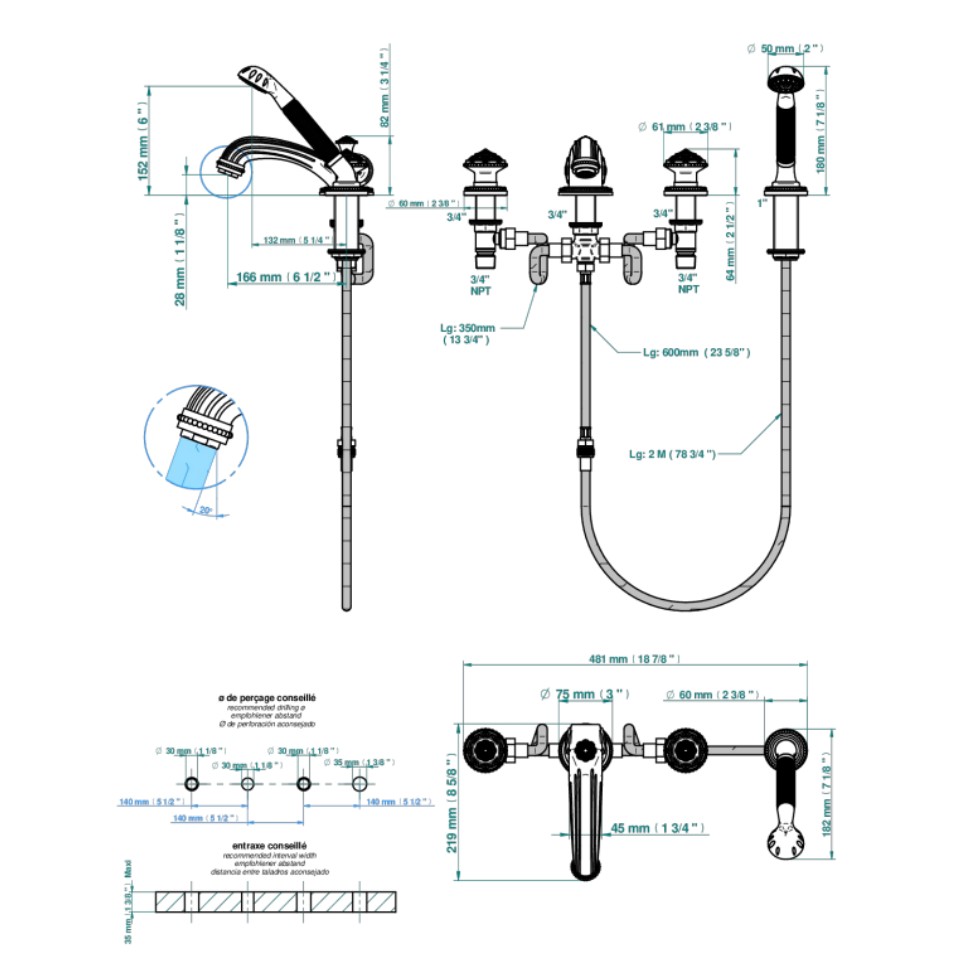 Bec : 35 l/min à 3 bars - Douchette : 9,5 l/min à 3 bars