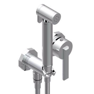 Trim only for WC douche including: trigger spray, wall mounted single lever mixer, reinforced hose (1.25m), wall outlet with integrated elbow with safety stopper