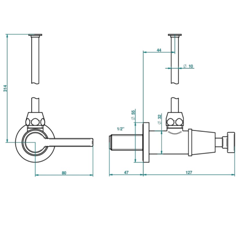 SPIRIT WITH LEVER旋塞尺寸圖1