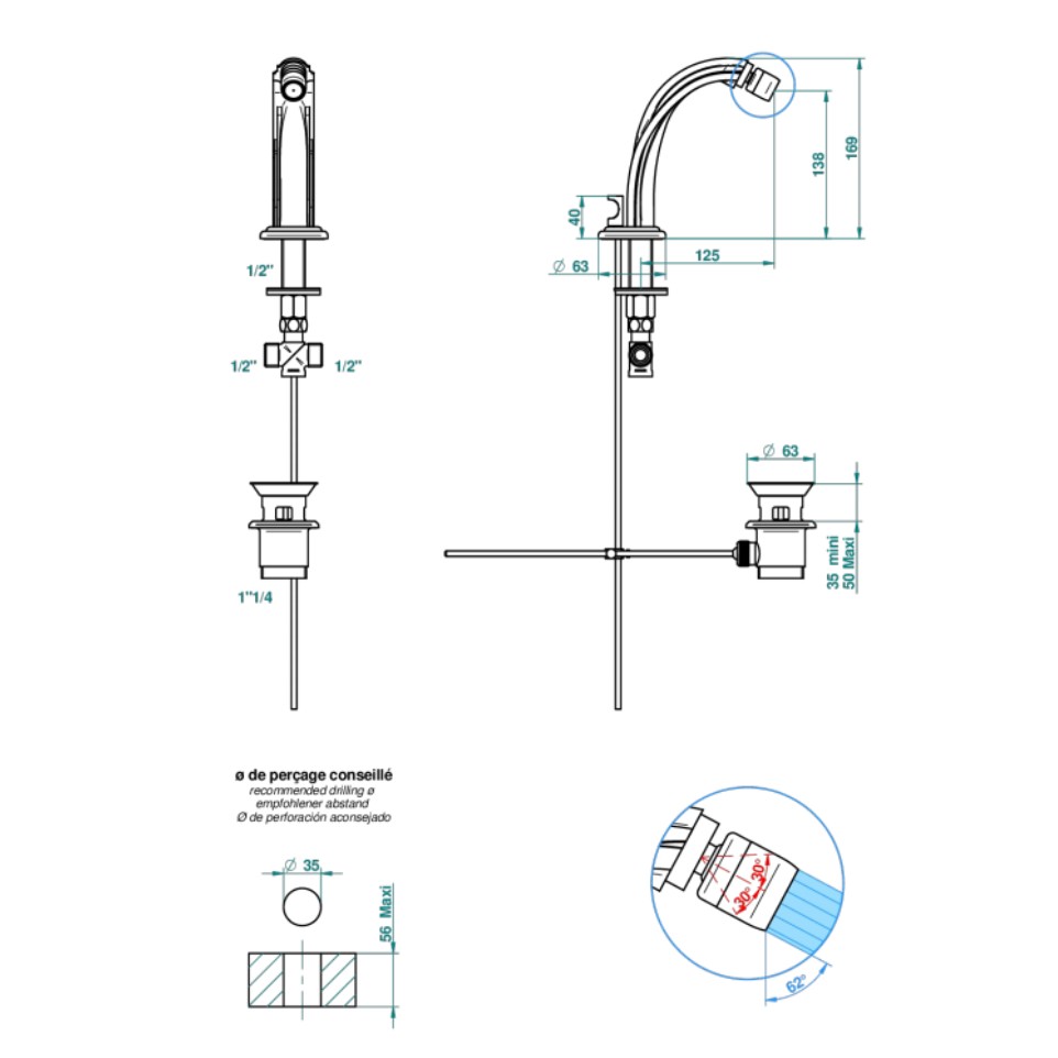 Recommandé : 3 bars (max. 5 bars) - Advised : 43,5 psi (max. 72 psi)