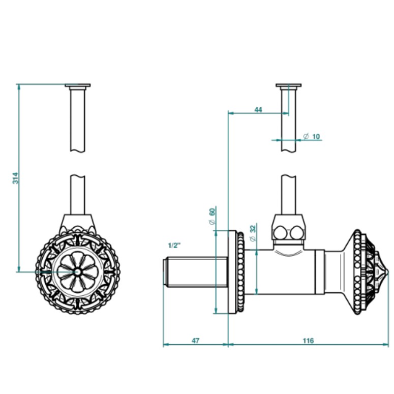 1/2" stylised adjustable stop cock with 30 cm tube