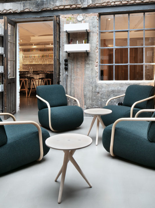 The side table 1025 by James Van Vossel represents solid elegance and minimalistic essence: three wooden legs placed in regular 120-degree intervals outline an imaginary circle on the floor. On the surface of the tabletop they appear as perfectly aligned flush circles. The different grain pattern of the three table legs, which taper towards the bottom, creates an additional graphic effect contrasting with the tabletop. In addition to its function as a side table, this new model displays high-precision production quality – sophisticated technology meets masterful craftsmanship – and a distinctly sculptural look.
