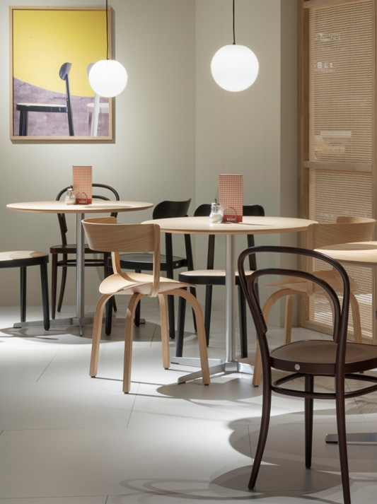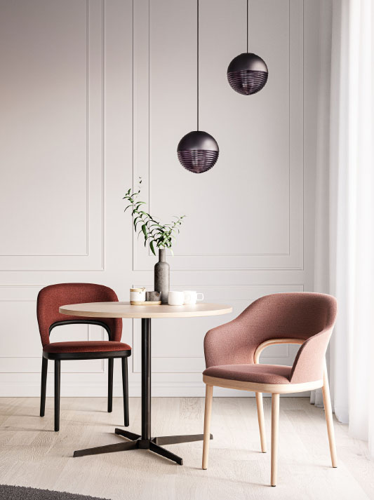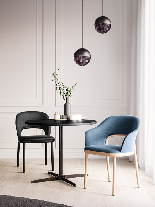 Designers Claudia Kleine and J?rg Kürschner of Formstelle have designed minimalist bistro tables in two sizes that match the armchairs and side tables of the lounge range 808. The product family 808 is growing and has been extended by the table 1818 with a height of 74 cm and its big brother 1828 as a high table with a height of 105 cm. The elegant bistro tables create space for communication and are perfectly suited for use in the restaurant and reception segments.