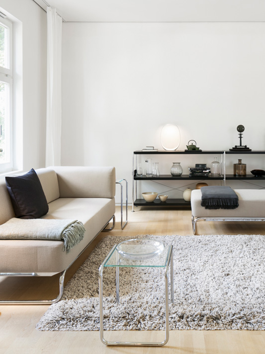 The bentwood technique perfected by Michael Thonet was a source of inspiration for Marcel Breuer’s experiments with bent tubular steel. The four-piece set of nesting tables B 9 were developed based on this idea. The small tables can be used in a variety of ways – as side tables in seating groups, as practical storage surfaces or as the perfect place for a vase with fresh flowers. After using the tables, they can be easily pushed beneath one another in a space-saving way. The special feature of this range is its functional simplicity – the table set consist only of chrome-plated, bent tubular steel and rectangular panels.