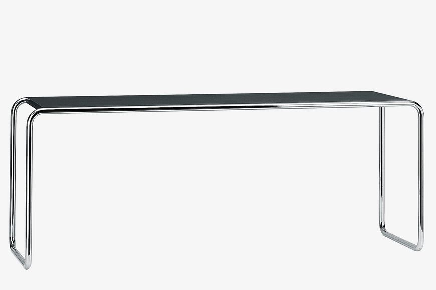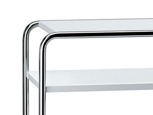 Long, narrow side tables like the B 10 are ideal for when you need to quickly put down an object – and find it again. They are also a decorative eye catcher in homes and offices. Today, their straight-lined aesthetics look familiar to us. Their inventor, Marcel Breuer, fought against overloaded and over-decorated living styles – still ubiquitous around 1920 – with his elegant, reduced tubular steel furniture. After initial experiments with tubular steel, a new material at the time, Marcel Breuer developed a series of small tables, including the long, narrow side table B 10. At the same time, he was working on an innovative chair design. With its strength and flexing properties, cold-bent tubular steel made such constructions possible. The first furniture made of tubular steel had legs and skids but did not yet make use of the flexing properties of tubular steel. Starting in 1928, Breuer began building prototypes of the cantilever chairs that we all know today.