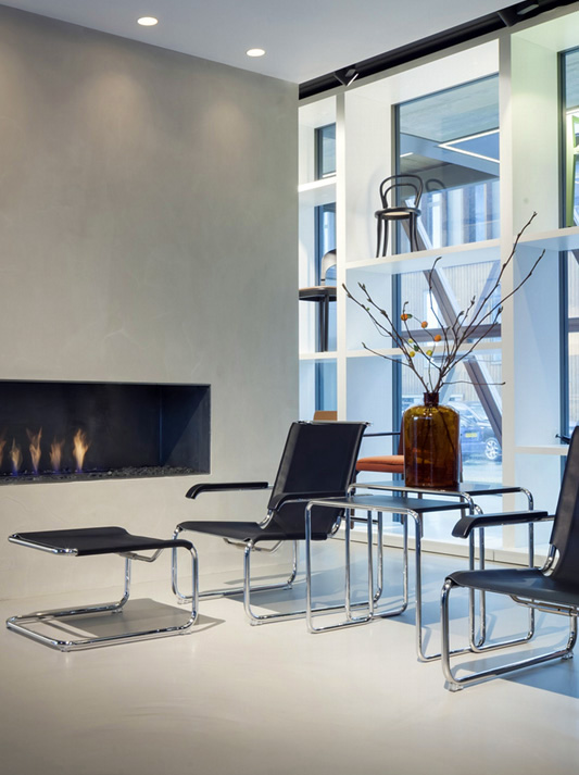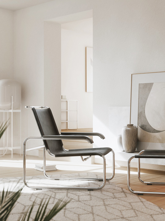 Among all the cantilever chairs of the Bauhaus epoch, the armchair S 35, with its lightness, flexibility and comfort, casts a shadow over everything heavy and inert. In 1930, the modern lifestyle communicated by the S 35 appeared visionary; today, it is part of our mobile and individual lifestyle. With the S 35, Marcel Breuer succeeded in combining all of the functions of a cantilever tubular steel armchair in a single line that also includes the armrests. Breuer achieved a double cantilever effect with his design: seat and armrests flex independently of each other. The flexing movement of the seat and backrest frame cantilevered towards the back is balanced by the flexing armrests. A matching footstool is available for extra comfort – also designed as a cantilever piece of furniture.