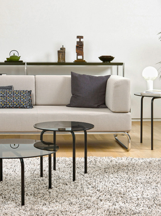 Based on the archetype of the minimalist sofa with a base of bent tubular steel, which was first added to the Thonet portfolio in the 1930s, designer James Irvine developed a versatile furniture system that can be used in a variety of settings. The S 5000 sofa range is based on a simple, intelligent construction idea that makes use of the modular principle. Inspired by the ever-increasing fusion of working and living spaces, Studio Irvine, in keeping with its founder, took on the task of intelligently refining it, so that it would fit into the modern concept of New Work: structurally identical arm and backrests or dividing panels can be integrated into the seat frame as needed to serve as a sight and noise barrier. This makes it expandable in a variety of ways, and, thanks to its variable side panels, it can also be used in multi-space offices. The panels create a frame for various cushions, which can be loosely put in the desired place.