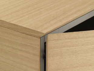 High-quality materials, clear forms, and functionality: the sideboard provides a wide range of storage possibilities in offices, conference rooms, waiting areas as well as private homes. The sideboard is available in three different widths. The height of the shelves can be varied. Elegance and quality down to the smallest detail is what makes this range special. All of the elements are well-proportioned and coordinated. With the integrated push-to-open system, the wooden fronts are not marred by handles or recesses. The doors vertically structure the cabinet body.
