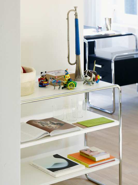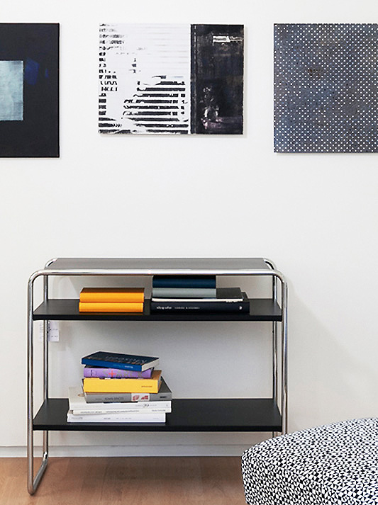 Inspired by the furniture of the architects Marcel Breuer, Ludwig Mies van der Rohe and Mart Stam, as well as by the possibilities of tubular steel as a material, Thonet began developing a number of in-house designs starting in the 1920s – mainly side furniture that was largely published in the 1930/31 catalog. The shelf B 22 is one of those pieces.