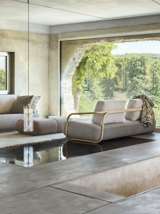 The range 2000 is a contemporary take on Thonet tradition. The sofa 2002 and armchair 2001 are memorable pieces, which are both based on an airy bentwood frame that wraps around a plush down-to-the-floor seat cushion and also forms the armrests. The elegant wooden bracket gives the sofa and armchair an especially lightweight look – they are also impressive as freestanding pieces in any environment. The sofa’s loose backrest side cushions can be individually combined. Thanks to its reduced form and high seating comfort, the bentwood sofa is not only suited for private use but also serves as a social meeting point in modern office landscapes. The ottoman 2002 H reflects the volume and seams of the armchair and sofa's seat cushions. This allows you create entire lounge landscapes with a dynamic and harmonious look.
