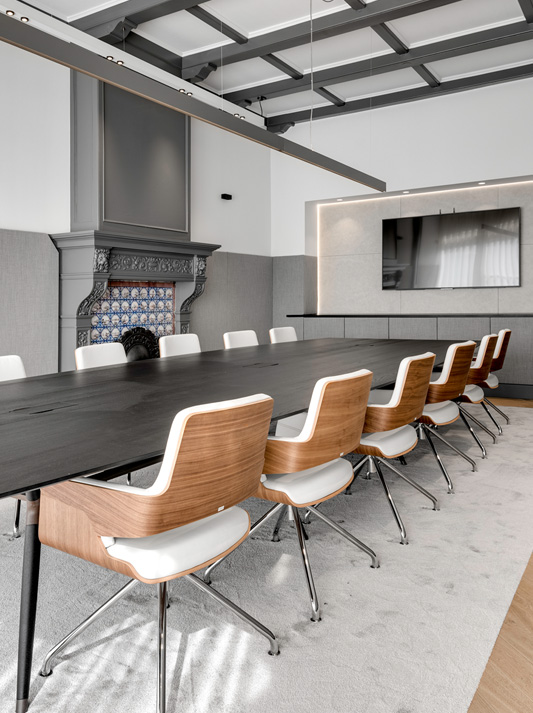 High-quality visitor's and conference chair with a special aesthetic appeal. Its unique characteristic is the accentuated separation of shell and frame. The moulded plywood seat shell has formal analogies to automobile design in the shape of the surfaces, which, at Thonet, has been translated to the wood. The ergonomic shape with special upholstery offers high seating comfort. The use of diverse veneers and stains and various upholstery covers in leather or fabric change the character of the chair and allow it to fit in with any interior design environment. Various backrest heights and foot frames are available.