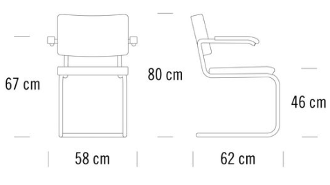 Among the tubular steel furniture models, the cantilever chair S 32 is especially versatile. It is at home in various design worlds and fits in with uncompromisingly modern interior design as well as in a diversified mix that gives space to different epochs and styles. The cantilever chair S 32 and the version S 64 with armrests are the most famous tubular steel classics. The appealing combination of new and old contribute to their popularity: Thonet’s tradition in the production of bentwood furniture with characteristic Vienna wickerwork, in contrast with the revolutionary use of tubular steel. Seat and backrest made of bent solid wood with wickerwork represent tradition, and the frame represents the present and future. With their versatility, they became bestselling cantilever chairs and still are today. Marcel Breuer designed the S 32 and S 64 during his time in Berlin in 1928. Thonet has been producing both models since 1930.