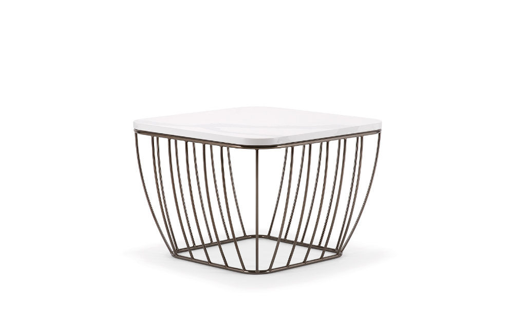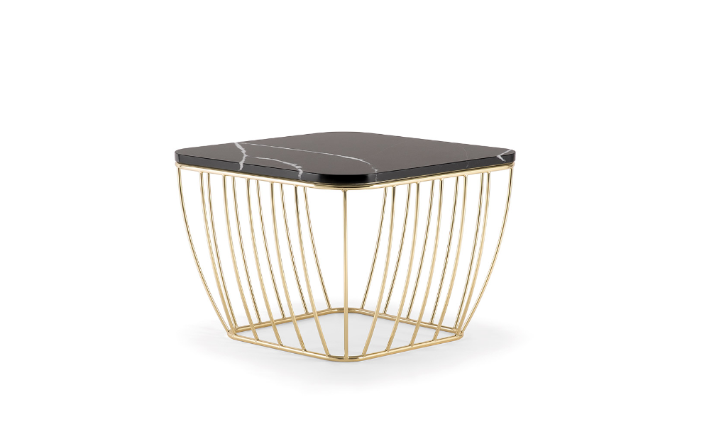 Collezione di tavol in metallo, abbinati a piani in legno marmo o imbottiti.
