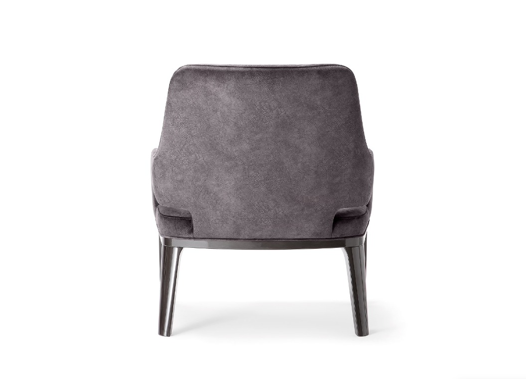 Linterazione tra morbide rotondita e linee decise dona un tocco di modernitae contemporaneita alla collezione.Una delle ultime nate, ma gia molto amata dai nostri clienti.il dettaglio in legno massello di faggio che, avvolge la seduta, dona eleganza eraffinatezza ad ogni ambiente.