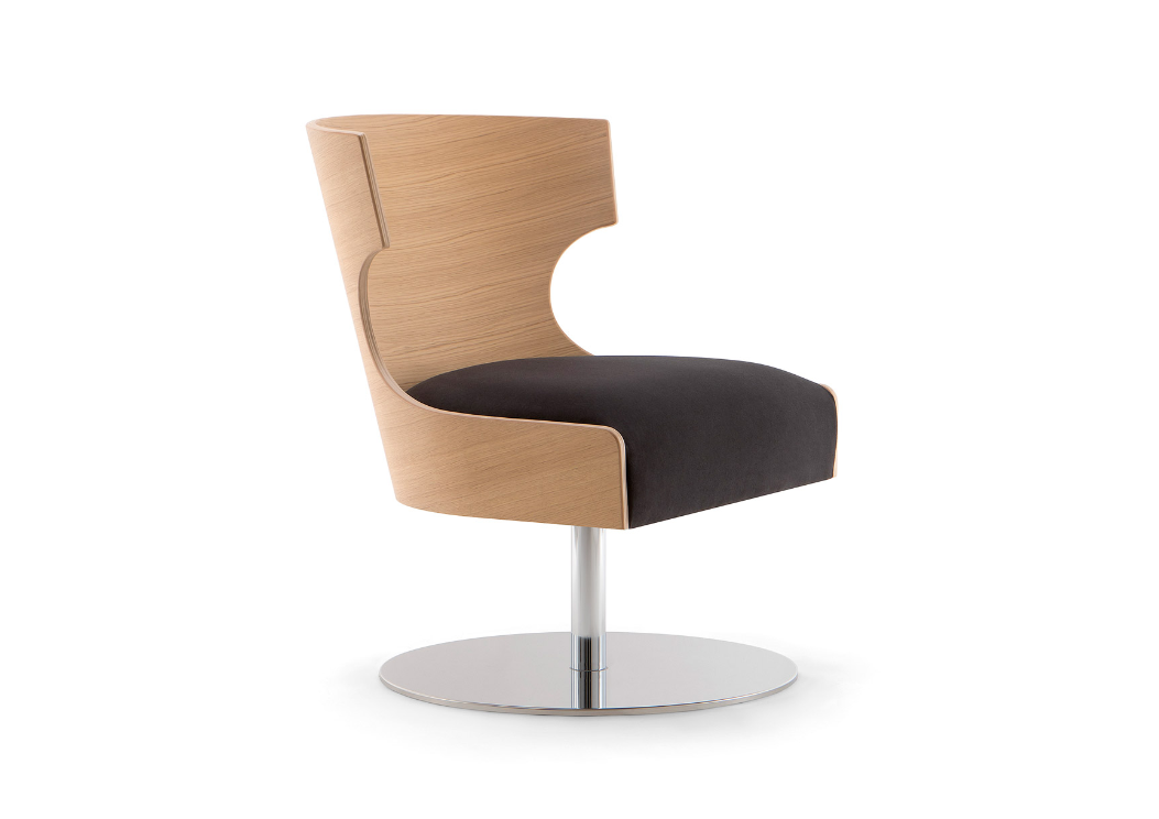 La scocca avvolgente in multistrato, dal design originale, contraddistingueuna famiglia di sedute composta da tanti modelli diversi.Poltroncina essenziale e semplice nelle linee, ma perfetta per un utilizzocontract. La leggera scocca in legno rivestita, dona una seduta confortevole eadatta ad ogni cliente. La base  realizzata metallo, con disco pieno.