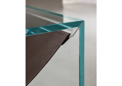 The shelf (leather or fabric) held by metal supports (stainless steel, brass or cupper) distinguishes and completes the product.