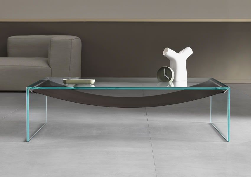 Furniture collection made of console, low table, side table or bed side table with frame in extra clear glass.
