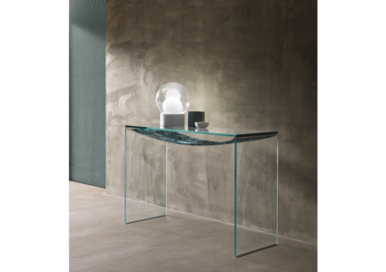 Furniture collection made of console, low table, side table or bed side table with frame in extra clear glass.