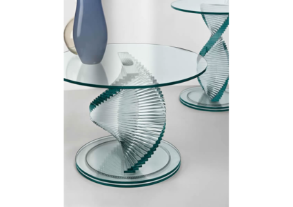 A patented system of steel bearings is used to revolve the base, accentuating the helical movement of the central column.