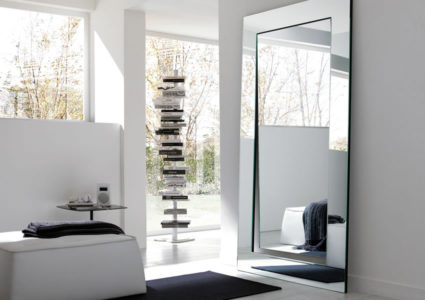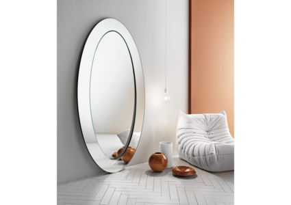 Floor mirror. Made out of an only panel, the frame sticks out from the lower part.