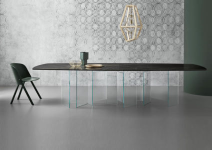 Furniture collection characterised by a base in extra clear or smoked glass.