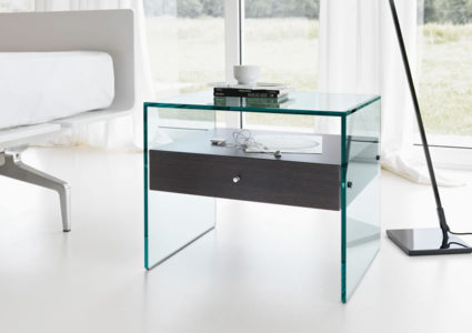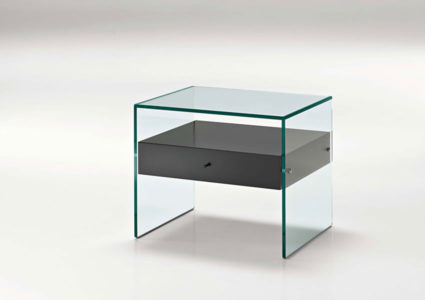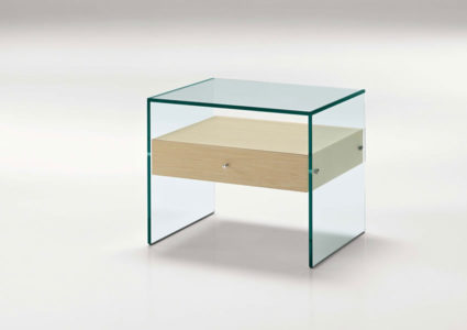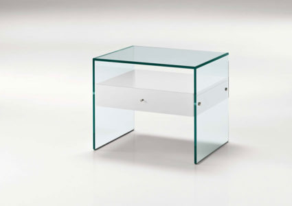 Small table in glass with wood drawer.
