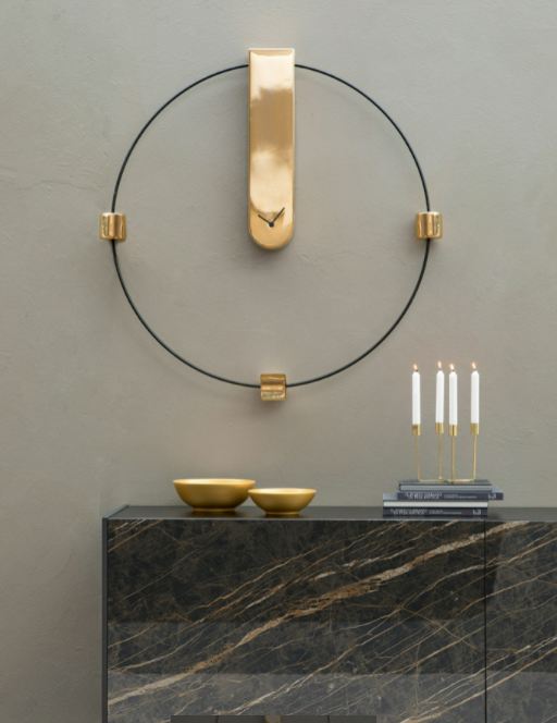 Orologio analogico in metallo laccato ed inserti in ceramica. Scandisci il tuo tempo all'insegna della ricercatezza estetica.