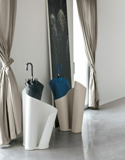 Il metallo curvato prende per Narciso la forma di un petalo, che dolcemente si avvolge su se stesso. Un portaombrelli elegante e facilmente adattabile ad ogni contesto, anche soprattutto alla varietà di colori disponibili.